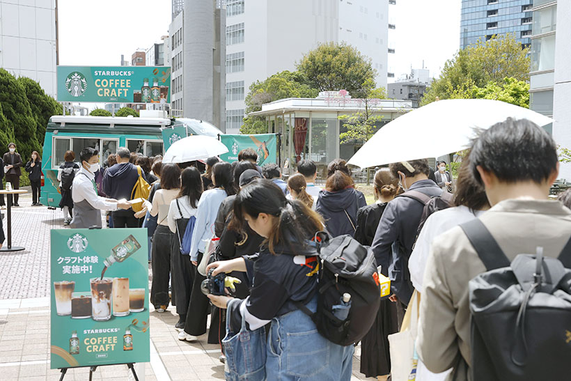 ネスレ日本は、3月1日に新発売した「スターバックス コーヒークラフト」を体験できる無料試飲イベント「スターバックス コーヒークラフト キャラバン」を、21日からスタートした。同イベントは「自分の好きを、クラフトしよう」をテーマに、東京都と大阪府の30ヵ所を90日間かけて巡回し、計15万杯を提供する予定だ。同品の体験を通じ、新規ユーザーとの接点拡大を図る。