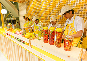 ユニリーバ・ジャパン・カスタマーマーケティングが展開する紅茶ブランド「リプトン」は8月31日までの間、紅茶やフルーツをカスタマイズして楽しむ新たなスタイルのアイスティー「Fruits in Tea」を提供する限定カフェを東京・表参道にオープンしている。新スタイルによる市場活性化を目的とするもので、茶葉とフルーツなどの組み合わせによるメニューは約4万通り。夏場のアイス需要の底上げにもつなげる方針。 「Fruits in Tea」とは好みの紅茶やフルー