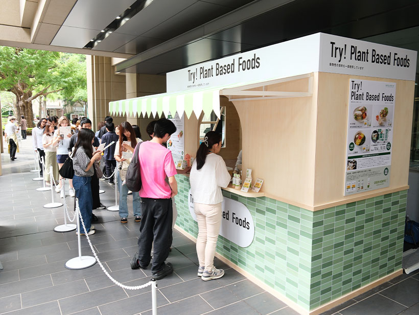 次世代食として若者層の支持は高い。接点強化は認知に重要な機能を果たす(10月6日から2週間、青山学院大学青山キャンパスで開催したキユーピーと同大学生の販売イベント「Try! Plant Based Foods」)