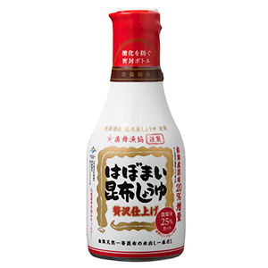 【北海道】歯舞漁協は、ロングセラーを続ける「はぼまい昆布しょうゆ」シリーズ3品目のラインアップとして「はぼまい昆布しょうゆ 贅沢仕上げ」(写真)を8月25日から発売し拡販を進めている。 新商品は、歯舞産天然1等ナガコンブの使用量を従来品よりも2割増量。水出し製法で抽出した昆布ダシの一番ダシと道産大豆・小麦で仕込んだ“北海道産丸大豆しょうゆ”をブレンドしたぜいたくな高級づくりで、素材のうまみを引き立てる。小容量ニーズに対応し200ml入り卓上タイプで