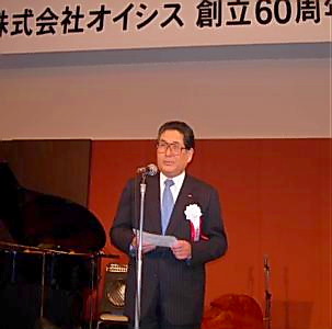 (株)オイシス(兵庫県伊丹市、072・772・0144)は15日、クラウンプラザ神戸(旧・新神戸オリエンタルホテル、神戸市中央区)で、「創立60周年記念式典」を開催した。主に同社の仕入れ、設備、協力会社など120企業145人が列席した。 開会にあたり代表取締役社長・池野忠司氏があいさつ、「池野忠吉が1948年(昭和23年)に近畿食品工業(株)を創業、63年の明石工場建設をもとに、現在の会社の礎を築いた。後に経営を引き継ぎ、約10年単位の経営計画によ