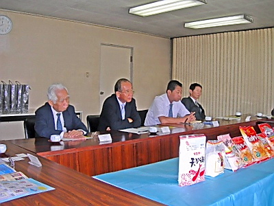 前田敏弘会長(左端)と前田辰雄社長(左から2人目)