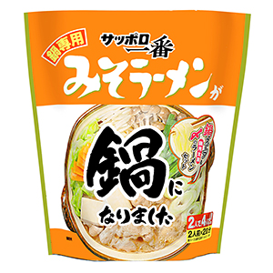 サンヨー食品は10月5日、サッポロ一番の鍋専用商品として「みそラーメンが鍋になりました」と「塩らーめんが鍋になりました」を発売した。 同商品は「ラーメンを夕食の主食として食べていただきたい」(同社)との思いで開発。「家族で鍋を食べるというTVCM効果と、なじみのデザインを採用しつつも用途が明確なパッケージで、発売以来予想を大きく上回る人気」(同社)という。また、今回の発売に際して締め専用麺も開発し、「食べ応えのあるプリプリした食感の太麺に仕上がって