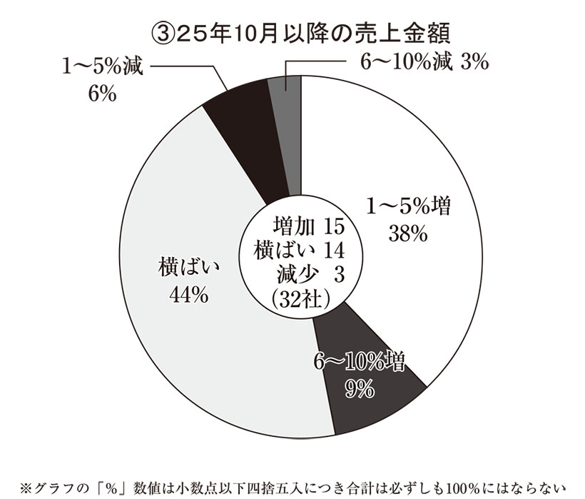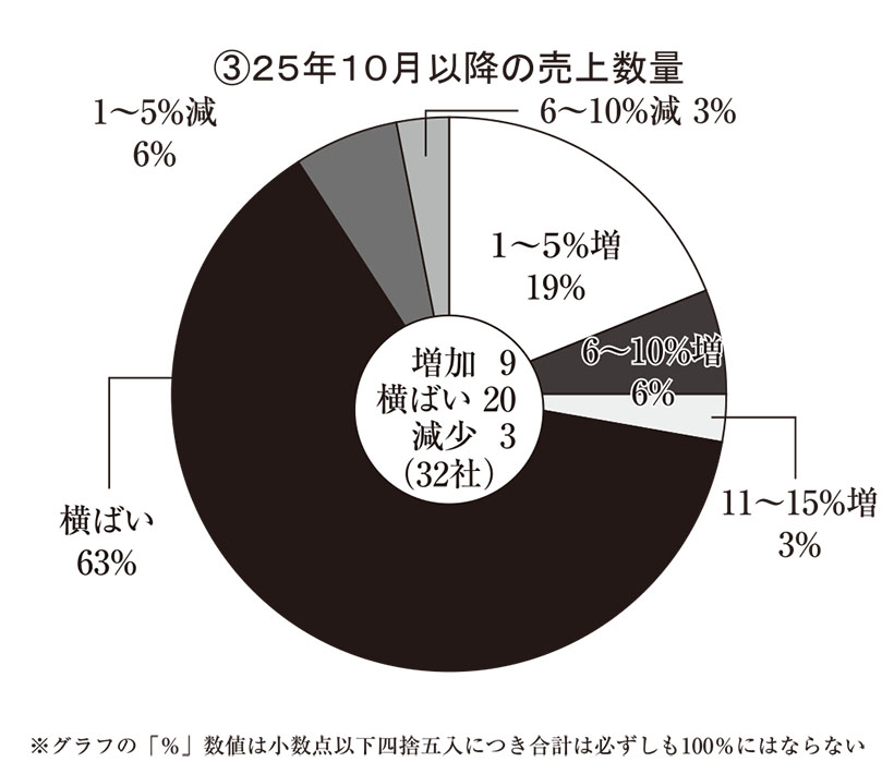 食に対する消費者の財布のひもについて前年の同時期より「固い」と答えたのは13社・41%と、前年調査に比べて18ポイント減った。「変わらない」