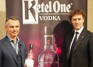 キリンビールマーケティングは1月28日、東京都内で「ワールドクラス2016&Ketel Oneブランドセミナー」を開催した。当日はノレット蒸留所の11代目ファミリーディスティラーのボブ・ノレット氏と、11代目アンバサダーのデニス・タムス氏を迎え、主力ウオツカ「ケテル・ワン」の試飲セミナーを実施した。また、世界規模のバーテンダーコンペ「ワールドクラス」のチャンピオン金子道人氏による世界大会の報告、大会で披露したカクテルのプレゼンテーションが行われた。 ノ