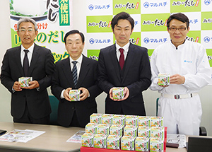 マルハチは4日、食べ切りタイプの「山形のだし3個パック」を3月1日に全国発売すると発表した。3個パックに小分けすることで、個食化トレンドに合った商品として消費者ニーズに応える。阿部敏明社長は「山形のだしは一つのジャンルを築いた。新商品でさらに活性化させたい」と意気込みを語った。 同品について、阿部武秀常務は「食べ切りでいつも新鮮でおいしい。パックに好みの薬味を直接入れられるので皿を汚さない。新しい食べ方、利便性を備えた、進化した山形のだし」と説明し