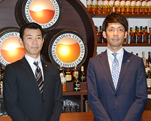 サントリースピリッツの本山峰之ウイスキー・輸入酒部課長(右)と日比谷Barの松波明頼最高執行責任者