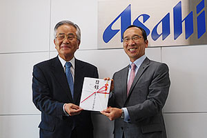 アサヒグループホールディングス(GHD)は7日、独自の社会貢献ポイント制度「アサヒエコマイレージ」で積み立てた20万円を東京都の墨田区社会福祉協議会に寄付した。本社(墨田区)勤務の社員が近隣のゴミ拾いなどのボランティア活動で得たポイントを元にしたもので、奥田好秀専務取締役は「墨田区の人が安心して生活できるように役立ててほしい」と期待を述べた。 寄付金を受け取った墨田区社会福祉協議会の西原文隆会長は、「協力いただいた社員の方々にも喜んでもらえるよう、