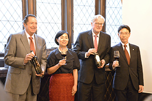 宮石徹取締役常務執行役員営業本部長(右端)、アンドリュー・カイヤードマスターオブワイン(右から2人目)、ホセ・ルイス・ムギーロ氏(左端)