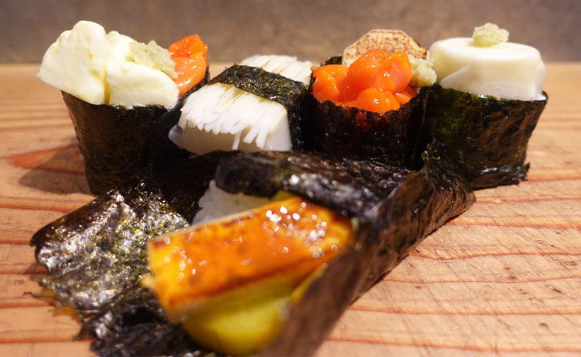 【六甲バター】「Q・B・B ベビーチーズ for mom」の取り組みの一環として開発した生魚などを使用しない「似せ寿司」