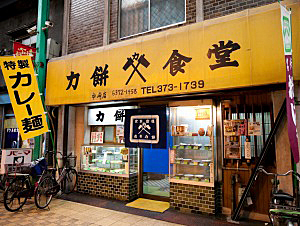大阪市北区の「力餅食堂 中崎町店」は、カレー粉を練り込んだ手打ちうどん「カレー麺」で有名。「カレーうどんのうどんもカレー味にしたら面白そう」という思いつきがきっかけだ。 見本が見当たらない中、「ルウより粉のほうが風味をつけやすい」「カレー粉は生地に混ぜるより小麦粉に混ぜるほうがまんべんなくゆきわたる」などのノウハウを一つずつ発見。カレー麺にカレーをかけた「カレー皿うどん」を約10年前に生み出すと、普通の白うどんにはない「パンチの効いたのど越し」が受