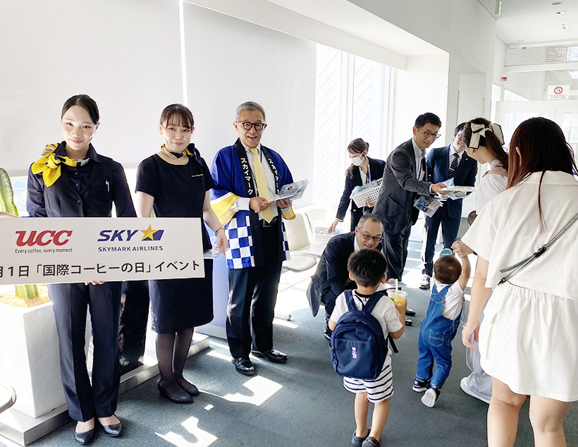 【関西】UCCコーヒープロフェッショナルとスカイマークは10月1日の「国際コーヒーの日」に、神戸空港(神戸市中央区)で記念イベントを開催した。