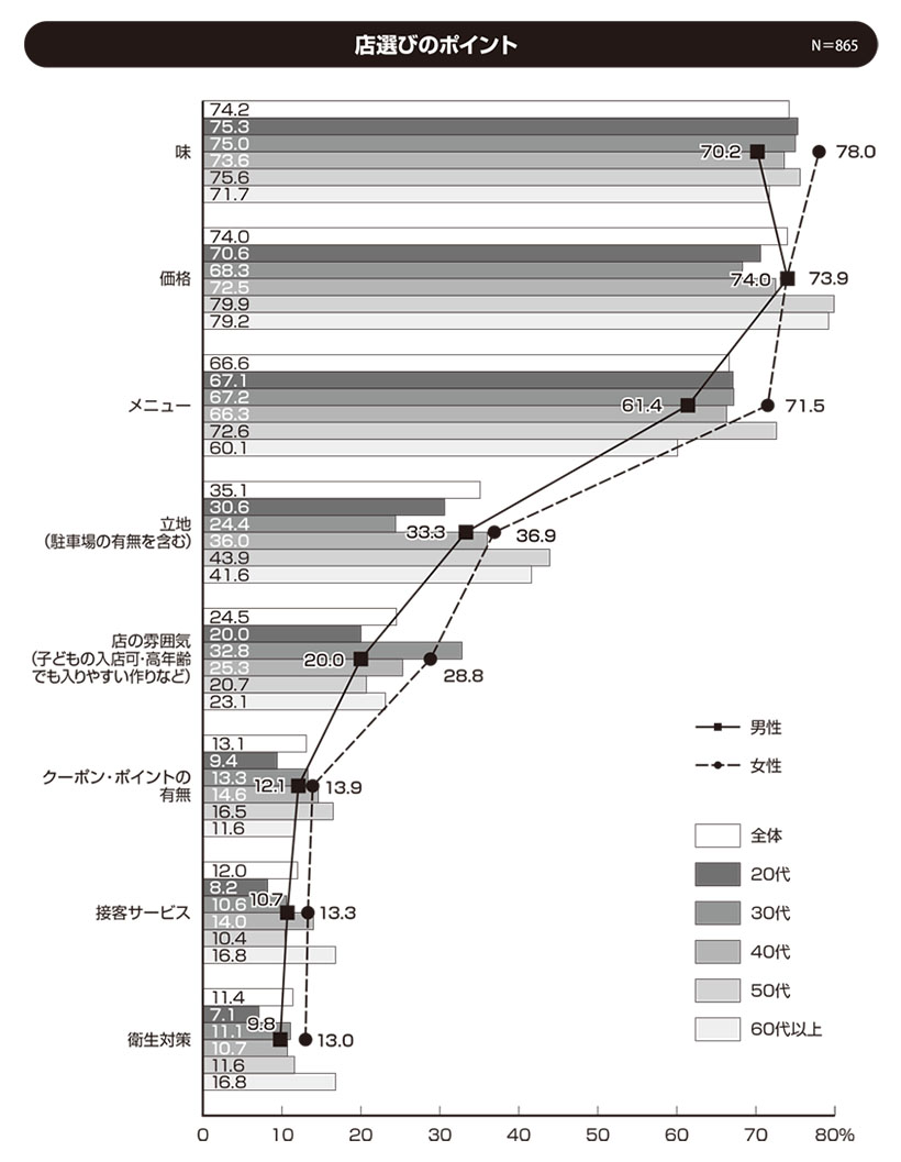 特集 総合 2026.01.29●メニュー決めで重視すること N=1000 ◇女性50代以上の4割強が健康面 若い年代ほど好み重視 女性の方が「健康面」を重視する人が多く、女性の中でも50代以上は4割以上と特に多い。年代別では60代以上では4割弱を占める。基本的に若い年代ほど「…続きを読む