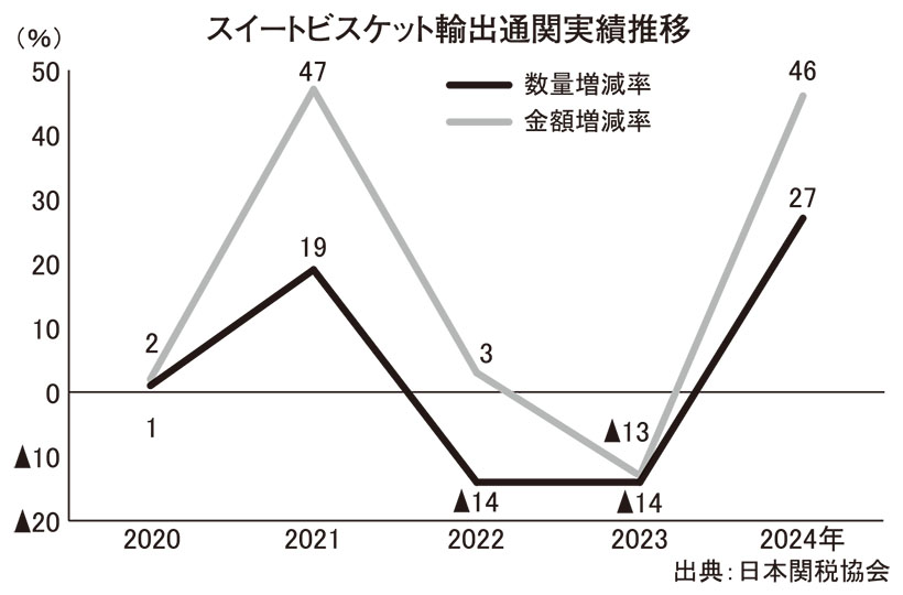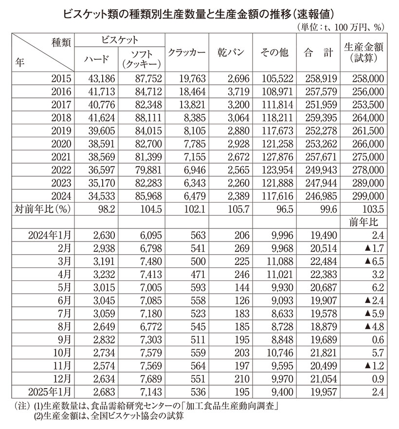 菓子 特集 2025.12.03全日本菓子協会が公開した24年のビスケット市場は小売金額4410億円と、初めて市場規模4000億円を突破した23年の記録を更新した。25年もその波は継続しており、KSP-POSデータの25年1~10月の累計販売金額は前年比5.7%増、販売数量は同1.…続きを読む