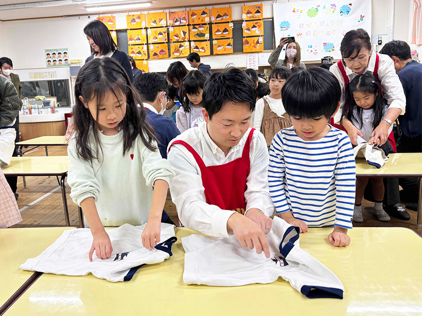 一人ずつ「ありがとうのきゅうりょう袋」を手渡し、感謝を伝えた