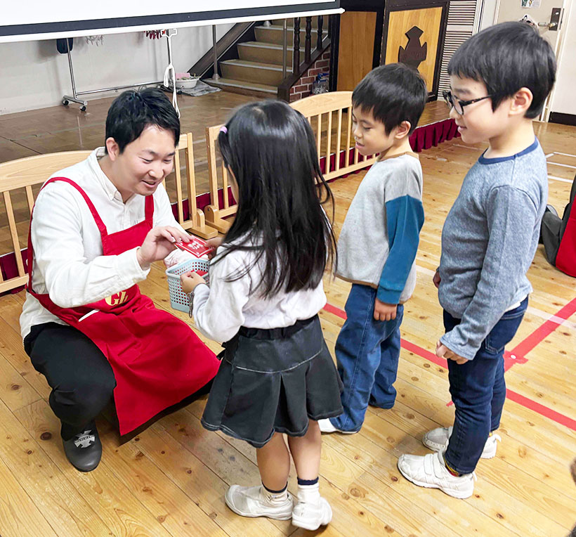 ロッテは、チョコレートで気持ちを伝える新プロジェクト「チョコは、言葉の代用品。」を始動した。その第1弾として11月20日、子どものお手伝いデビューを応援する「『はじめてのお給料はチョコレート。』お手伝い体験会」=写真=を東京都江東区の認定こども園文化教養学園で開催した。花王ホームケア事業と初連携し、同社製品を使用した家事やコツを園児に伝授。チョコレートを報酬として手渡すことで、お手伝いの達成感と「誰かのために動く喜び」を伝える機会を提供した。