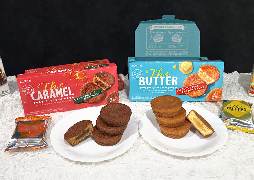 ロッテは24日、13年ぶりとなる半生ビスケットの新ブランド「The BUTTER」「The CARAMEL」を発売した。静岡県を含む東日本エリアで先行販売する。ビスケット事業50周年の節目に、同ブランドを「チョコパイ」「カスタードケーキ」に続く第三の柱へ育成。専門店ニーズをとらえたご褒美スイーツとして、半生菓子市場の拡大とビスケット事業の持続的成長につなげる考えだ。