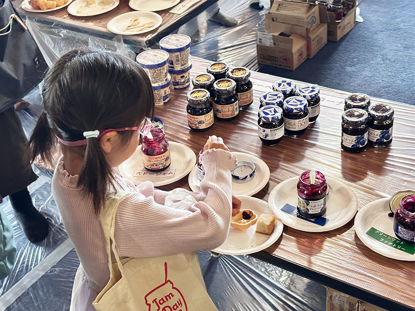 参加企業のジャムがフレーバーごとに並び、参加者は味比べを楽しんだ