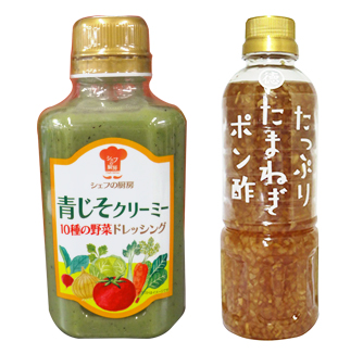 青じそクリーミー10種の野菜ドレッシング(左)とたっぷりたまねぎポン酢