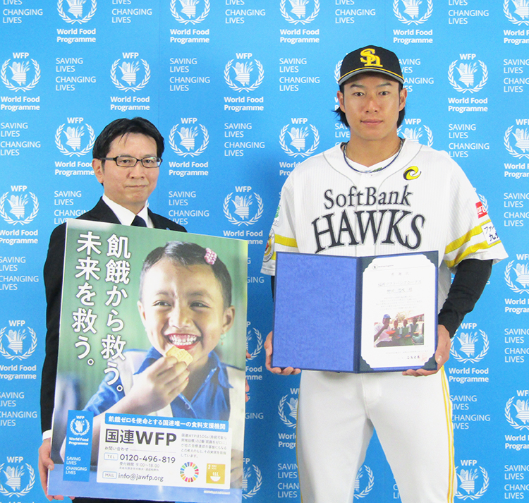 【九州】国連WFP協会は9日、福岡ソフトバンクホークスの柳田悠岐選手へ感謝状を贈呈した=写真=。国連WFPは、飢餓をゼロにすることを使命に活動する国連唯一の食料支援機関。途上国の学校へは年間およそ2000万人の子どもに給食を届けている。国連WFP協会は、日本における国連WFPの公式支援窓口を担当する認定NPO法人だ。 柳田選手は現在、公式戦とポストシーズンでホームラン1本につき寄付額を決め、国連WFPへの寄付活動を行っている。直近の2022年は、ホ