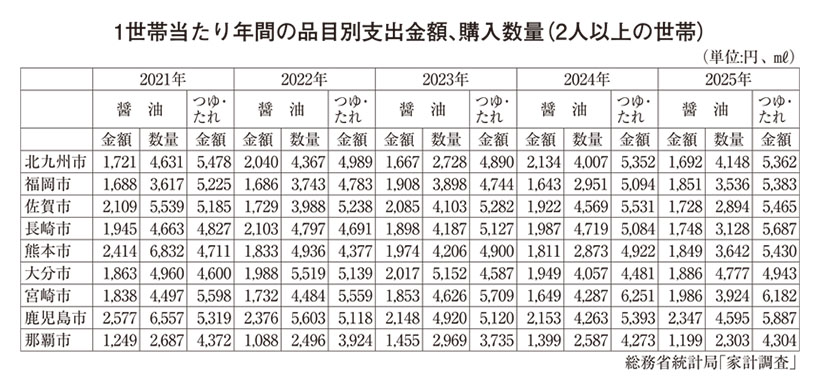 調味料 特集 2026.04.06つゆ動向を考える上で、外せないのが天候条件だ。九州でも最高気温を更新した地点が複数みられた。気象庁によると、2025年夏(6~8月)で最高気温更新地点は、大分県中津市中津(38度C)、佐賀県唐津市唐津(37.5度C)、熊本県水俣市水俣(38.1度C)…続きを読む