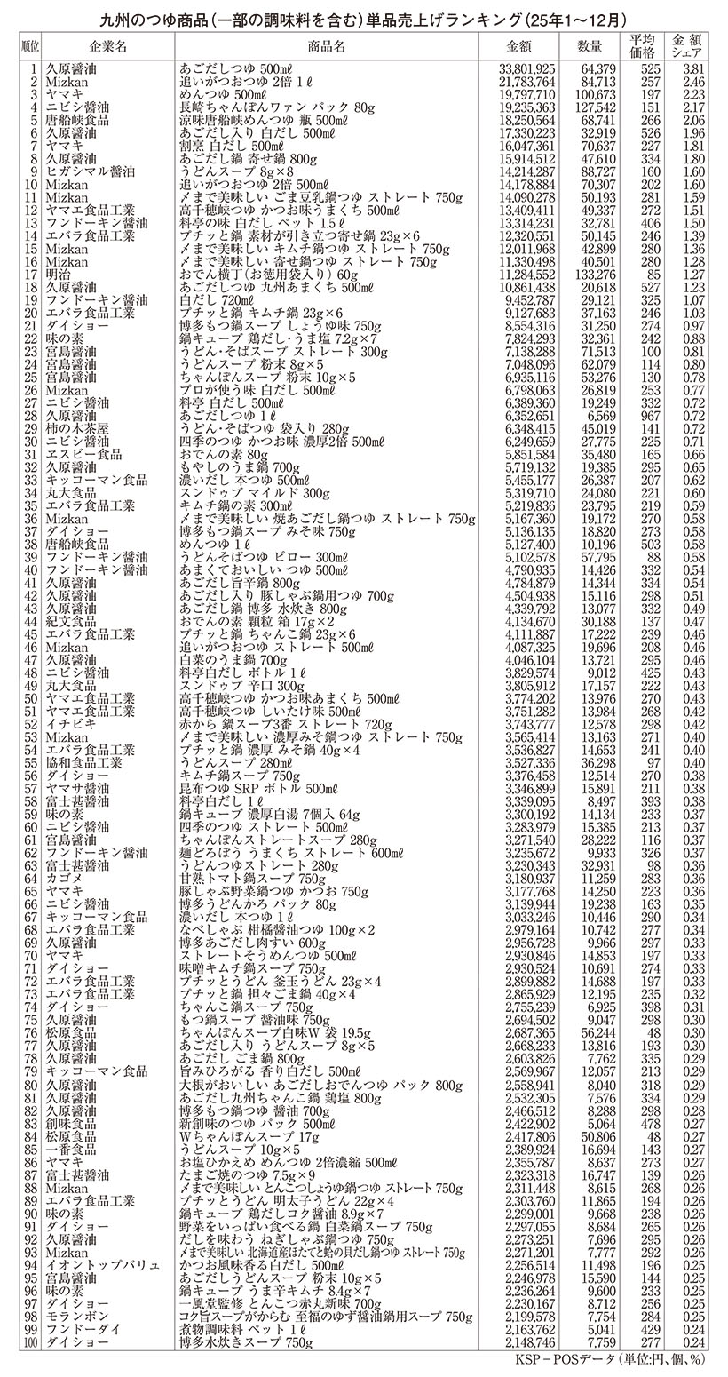 調味料 特集 2026.04.06昨シーズン実績でのプラスの話題として、全国メーカーで万能調味料が売上げをけん引する事例があった。それがヤマサ醤油の「ぱぱっとちゃんと これ!うま!!つゆ」だ。九州ではTVCMが投入されない分、同社として拡販に苦戦していた商品。そこに料理研究家のリュウ…続きを読む