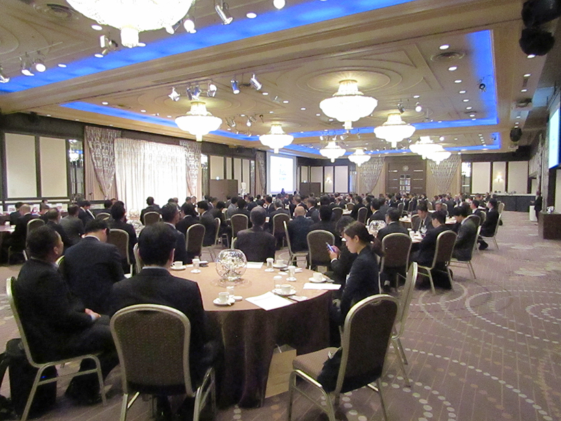 【九州】第47回火の国会総会(事務局=亀井通産内)が3月24日、ANAクラウンプラザホテル熊本ニュースカイで開催され、メーカー幹部らや亀井通産のトップや幹部が親睦を深めた。 土屋由介会長(味の素九州支社長)は冒頭、「連日のように中東情勢が報道されている。業界に関わる身近な懸念として、包装資材、物流に関わる原油、肥料の原料など、さまざまなものが挙げられる。今後の動向も不透明な状況だ。そうした状況下でも、変わらず毎日の食事は続いていく。カメイホールディ