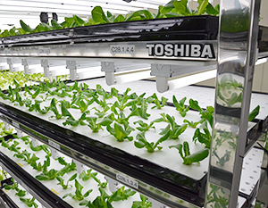 東芝は9月に竣工した神奈川県横須賀市にある植物工場「東芝クリーンルームファーム横須賀」で栽培する野菜の出荷を、今月下旬から開始する。葉物野菜を年間300万株(1株70g換算)栽培する同工場の生産能力は、国内でも最大級。無農薬でほぼ無菌状態を実現した安全・安心な「スペシャリティベジタブル」を通じて、効率的なエネルギー事業、情報基盤を支える記憶装置事業に続く同社第3の柱として、ヘルスケア事業に本格参入していく。(小澤弘教)