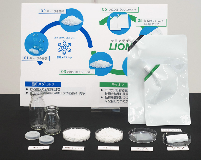 雪印メグミルクとライオン、資源循環モデル創出を宣言 プラキャップから容器へ
