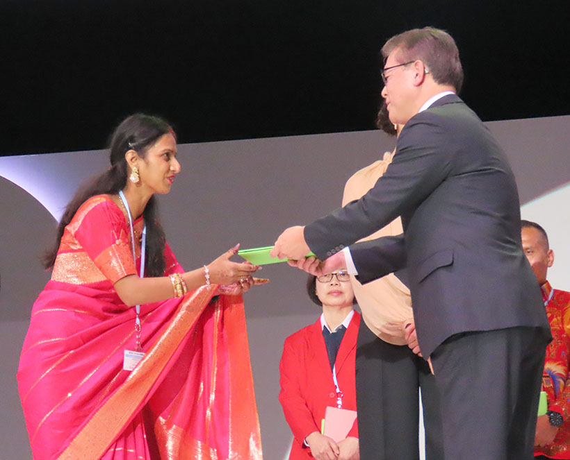 ヤクルト本社は10月26日、千葉市の幕張メッセで「2025ヤクルト世界大会」を開催した。日本を含む世界40の国と地域から約3500人のヤクルトレディ(YL)、ヤクルトビューティ(YB)が参集。国内外での活躍をたたえた。成田裕社長は「『人々の健康を守る』という理念は、時代や国境を越えて共感を得られる」として、日ごろの成果への感謝の意を表し、創業90周年のメモリアルイヤーの大会を祝した。(小澤弘教)