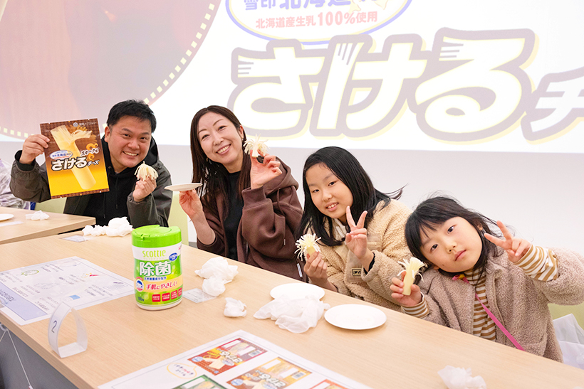 雪印メグミルクは11月30日、神奈川県海老名市の同社海老名工場で、「ミルクフェスティバルin海老名工場」を開催した。バター作りや紙パック工作などに加えて、同工場独自企画として「さけるチーズ ボンバー大会」なども実施。全国8工場で、リレー形式で行ってきたイベントのフィナーレを、同社最大の市乳工場で飾った。