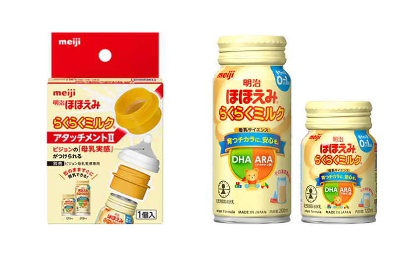 受賞したのは、乳児用調製粉乳の「明治ほほえみ」、「同らくらくキューブ」、乳児用液体ミルクの「同らくらくミルク」、同品に付けて使える「同らくらくミルク アタッチメントII」の4品。外出時での授乳のしやすさや、災害備蓄用など、利便性や栄養面