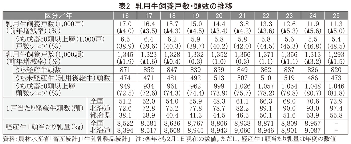 乳製品 牛乳・乳飲料 特集 2026.01.21昨年は、「2023年猛暑」の再来ともされた酷暑に見舞われ、生乳生産への影響が懸念されましたが、生産者の暑熱への対策も進んだため、生産現場における影響は限定的にとどまり、生乳生産量は、前年を上回る水準となりました。しかしながら、23年以降の後継牛出生頭…続きを読む