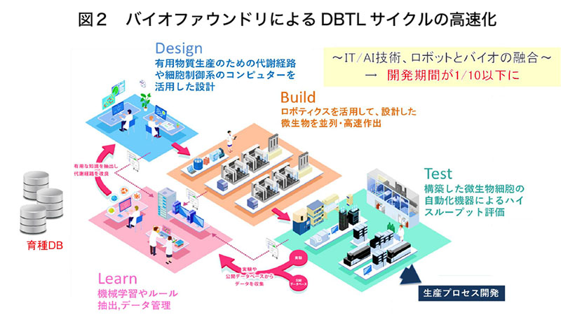 図2 バイオファウンドリによるDBTLサイクルの高速化