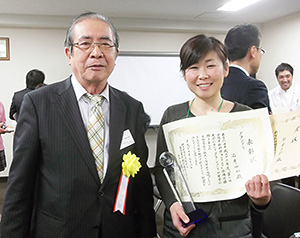 グランプリの石井ゆかさん(右)と島田圭一郎理事長