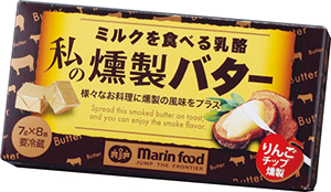 “燻製バター”に新市場創造の期待が高まっている。 「ガーリックマーガリン」に代表される、いわゆる“色物”マーガリン・バターに強みをみせるマリンフードが挑戦する新ジャンルで、商品名は「ミルクを食べる乳酪・私の燻製バター」。 その名のとおり、バターを薫製したもので従来、高級レストランなどの手作り商品はあった。バターは30度C程度で溶けてしまうだけに、冷燻という方法で長時間かけていぶすのが一般的で、希少価値の高い高級食材に限られ