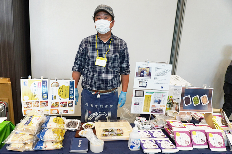 パックご飯や包装もちなど加工品も多く出展した小柳農園