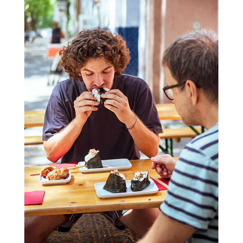 ●接客こだわり日本文化提供 ドイツのおにぎり専門店「Tokyo Gohan」。日本米にこだわり、店内調理で具材も極力手作りし、注文を受けてから握り、出来たてを提供する。接客にもこだわり、異文化のおにぎりを分かりやすく説明することで、現地の人に日本に小旅行した印象を与える。まさに商品だけでなく日本文化にも触れてもらう戦略で、21年11月のドレスデンでのオープン(今は閉店)を皮切りに、より大きな市場を求めベルリンに進出し、今年中に同市内にもう1店舗とハ