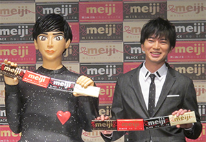 自身がモデルとなった「チョコ潤」 と並んでご満悦の松本潤