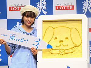 ロッテは人気アイス「爽」に絵を描きながら食べられる専用スプーン「爽ハッピースプーン」を開発し、11日から全国の店頭で配布している。異なる仕様のスプーン3本を使い分け、おいしく食べながら絵を描いて幸せになる、という新しい食体験を提供しようという意図だ。 これに合わせて12日、時事通信ホール(東京都中央区)で完成披露発表会を開催。ブランドキャラクターの広瀬すずが登場し、同スプーンで「爽」にお絵描きする楽しさを存分に表現した。