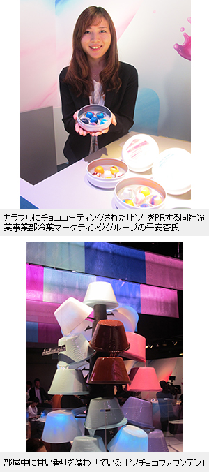 自由に4色のチョコレートソースを選んでディップ。自分だけのカラーリングの「ピノ」が作れる