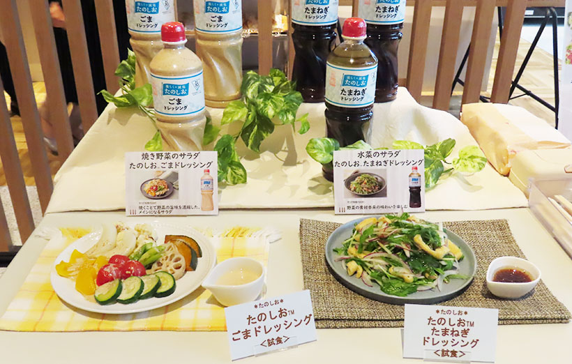 ケンコーマヨネーズは11月4日、26年春夏向けの新商品5品を発売する。「国内外の行動の変化や、食意識・嗜好(しこう)の多様化に応える」をテーマに設定した。健康志向・ヘルスケア意識の高まりへの対応として「楽しく+減塩」がコンセプトの「たのしお」ブランドからドレッシング2品を発売。コト消費に移行する消費動向を受けて、非日常・話題性のあるメニューを手軽に提供できる3品を展開する。 大塚洋和事業開発本部本部長は3日の発表会で「食スタイルが多様化するなかで、