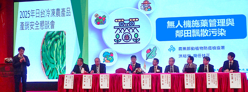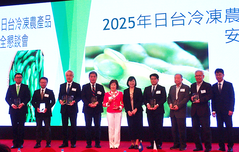 輸入冷凍野菜品質安全協議会(凍菜協)と台湾区冷凍蔬果工業同業公会は5日、台湾・高雄市の圓山大飯店で2025年日台冷凍農産物生産販売安全懇談会を開催した。両国の業界の親交を深めるとともに、さらなる台湾産枝豆の発展に向け気候変動や農薬ドリフト汚染などの課題について意見を交わした。(紫藤大智)