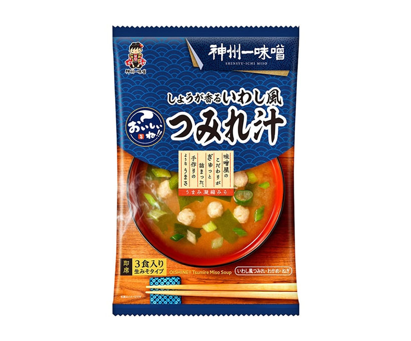 即席味噌汁「おいしいね!!」ブランドからはカップタイプの「いわし風つみれ汁」、袋タイプの「しょうが香るいわし風つみれ汁3食」が新発売。「本格的な即席味噌汁を食べたい」という消費者の声に応