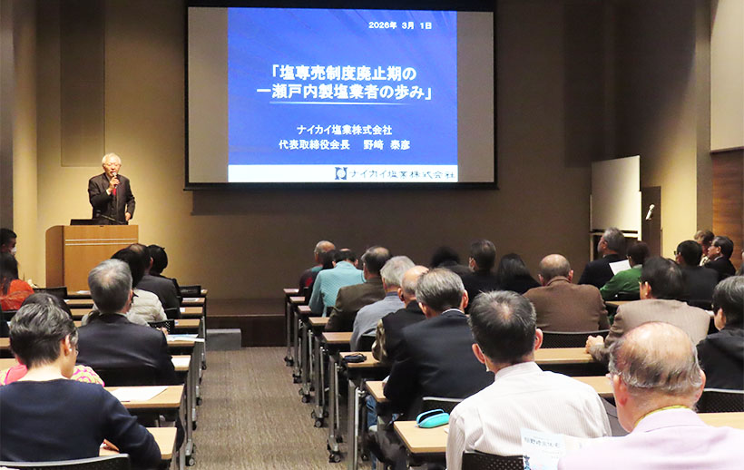 たばこと塩の博物館(東京都墨田区)は1日、塩事業センターとの共催による「塩専売120年記念講演会」を開催した。塩事業センター企画部の大庭剛司氏は冒頭、「塩の専売制度廃止から30年が経過しようとしているが、今後の塩や塩産業を考える上で一度歴史を振り返る時間を持つことは意義があると思い、今回の機会を設けた」と趣旨を述べ、「当時を知る人も減っている中、廃止前から製塩企業の社長を務め、現在も会長を務める野崎泰彦氏に講演を依頼した」と講演者の略歴を紹介した。
