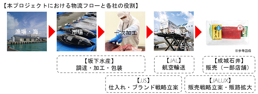 JALグループ商社のJALUXは沖縄県のJALJTAセールス(JJS)との連携により、沖縄県産「生まぐろ」を冷凍せずに航空輸送する産直プロジェクトを開始する。輸送したマグロは10日から成城石井の一部店舗で「空からお届け」ロゴを貼付した特別パッケージで販売を開始した。