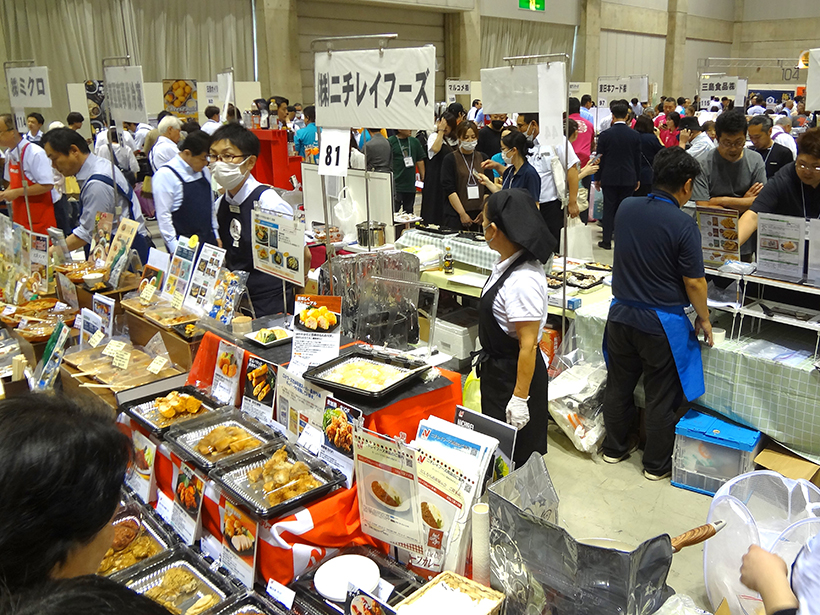 【東北】年末商戦に向け、業務用食品を紹介する総合展示会がこのほど、山形市の「山形ビッグウィング」であった。飲食店や給食関係者ら1000人以上が訪れ、商談を繰り広げた。 業務用食品卸のにしむら(山形市)が毎年企画しているもの。国内大手や地元の食品メーカー約140社が出展した。自然解凍で提供できる冷凍食品やコメの炊き増えを実現する調理料など調理場の課題解決に役立つ提案が注目を集めた。 にしむらがプロデュースした商品を集めたブー