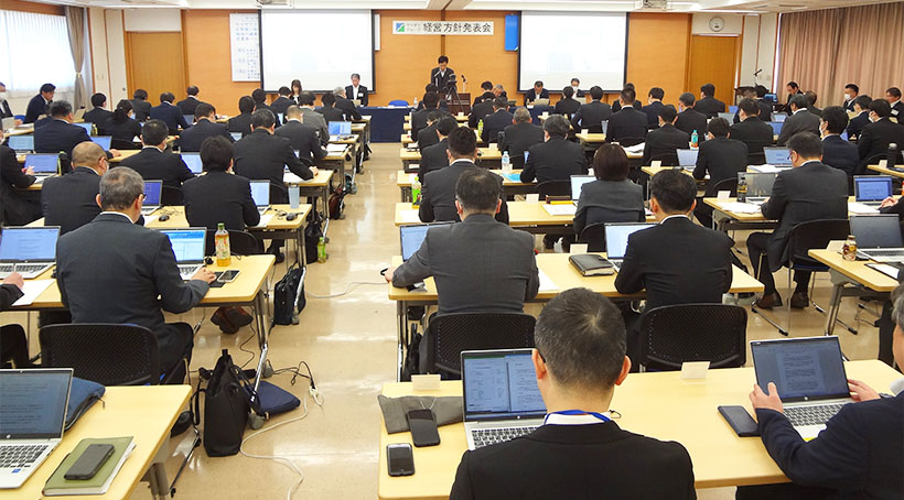 【東北】ヤマザワ(山形市)は26年度(26年3月~27年2月)の数値目標について、売上高871億円、営業利益8億円を目指すと発表。食品スーパー事業を山形、宮城の2県に集約し、地域顧客の掘り起こしを進める。 24日に山形市の本部で開いた方針説明会で報告した。秋田県南の食品スーパー・よねや事業を20日付で秋田県内同業に譲渡したことにより、今期は店舗数が前年同期よりも8店舗少ない62店舗でスタートする。古山利昭社長はあいさつで「現状の商圏シェアでは、まだ