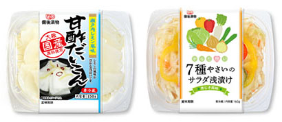 「7種やさいのサラダ浅漬け」(右)と「甘酢だいこん瀬戸内レモン風味」