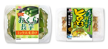 「旨とろ浅漬」(右)と「おくら長芋ミックス浅漬け」